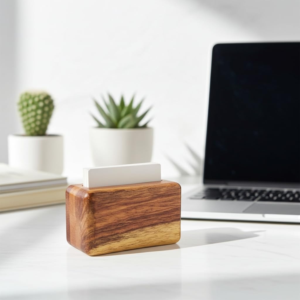 antique aura – handcrafted solid wood visiting card holder | premium desk organizer | natural wooden finishAntique Aura – Handcrafted Solid Wood Visiting Card Holder